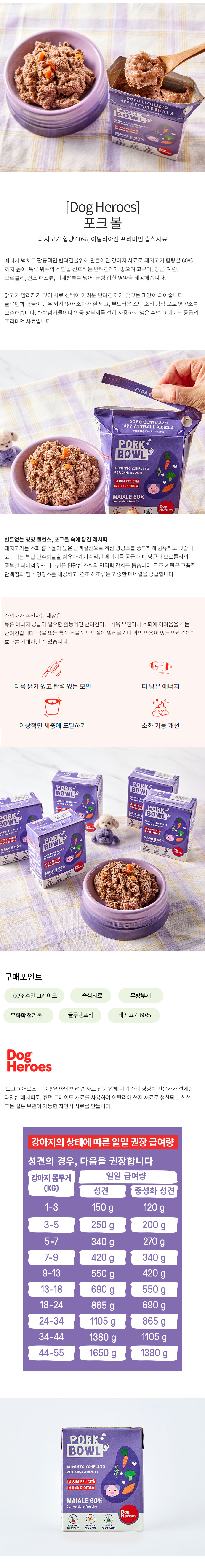 돼지고기 함량 60%, 단백질 베이스의 100% 이탈리아산 휴먼그레이드 프리미엄 습식사료