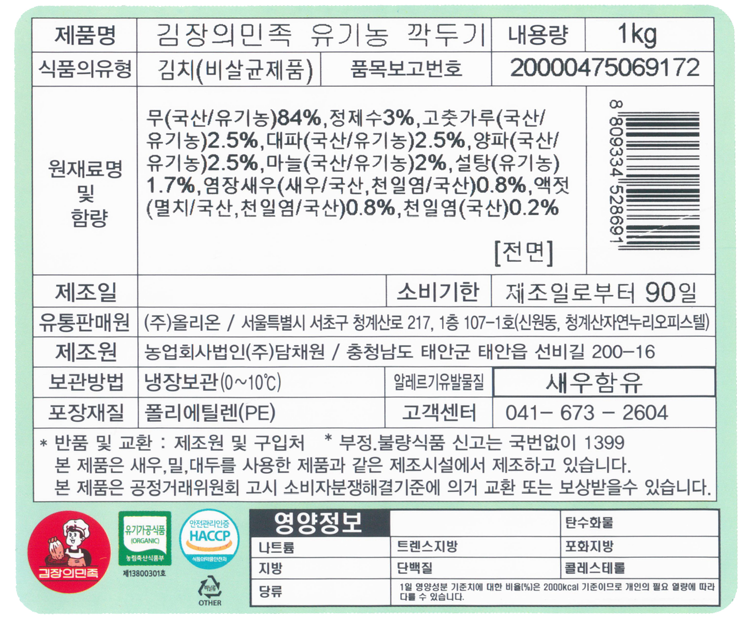 • 김장의민족 유기농 깍두기 1kg